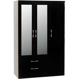 Introducing the Nevada 2-Door Wardrobe with Mirrored Door and Drawer - A contemporary gem that combines style, functionality, and a touch of elegance. Elevate your bedroom decor with this sleek and fashionable wardrobe, designed to keep your clothes organized and your space clutter-free. With two spacious doors, including a stunning mirrored one, and a convenient drawer, it offers ample storage for all your essentials. Plus, it comes with the added benefit of a practical hanging rail for your clothes and a built-in shelf for folded items, shoes, or accessories, ensuring everything has its place. Crafted with precision and available in various stylish finishes, the Nevada wardrobe complements any modern interior. Its durable construction ensures it lasts for years to come. Assembly instructions are included for your convenience. Upgrade your bedroom today and experience the perfect blend of elegance and practicality with the Nevada 2-Door Wardrobe Seconique Nevada Mirrored 2 Door 1 Drawer Wardrobe in Jet Black
