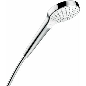 Features of the Croma Select S Shower set 110 Multi with shower rail 90 cm (26570400): Consists of: hand shower, shower bar, shower hose, slider Shower head size: 110 mm Spray pattern: SoftRain, IntenseRain, Massage spray Select button to comfortably switch between spray modes Hand shower holder inclination angle can be adjusted by 45° Maximum flow rate 16 l/min at 3 bar Pivot connector prevent hose from tangling Wall-mounted: screw fixing Wall supports: plastic Shower bar diameter: 22 mm Profile shower bar: round Operating pressure: min. 1 bar / max. 6 bar Product range : Croma Select S Colour : Chrome Material : Metal Manufacturer colouring : Chrome Length (cm) : 160 Hose length (cm) : 160 Number of jets : 3 jets Constructor warranty : 5 years Weight : 1.9