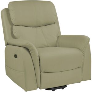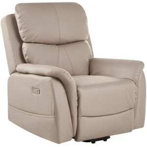 Lift Recliner Chair with Massage and Heating Function. Sit back and relax in this exceptionally comfortable reclining armchair. Equipped with a remote, you can use the massage function and choose which of the four available areas you want to focus on, set up a timer or turn on the heating to warm up tired muscles. Made from faux leather, its upholstery is smooth to the touch as well as durable. As the name indicates, the armchair will be a glorious addition to your living room, drawing the eyes of everyone who comes over. Full recline beckons for afternoon naps and a thoughtful lifting function ensures a smooth return to an upright position. Additionally, the armchair has a built-in USB A port so you can use your devices without getting up, and the two buttons next to it will allow you to swiftly adjust the seat. Details: Product Type: Reclining Chair Style: Modern General Color: Grey Shade: Taupe Material Type: Faux Leather Main Material: Vegan Eco Leather Additional Material: Iron