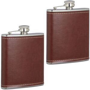 Whether it’s their size or contents, these stainless steel hip flasks are sure to bring joy to everyone. As unique drinking vessels, they are perfect for you and your friends on camping trips or at festivals. Drinks are always securely sealed inside, and the screw caps are attached to the flask body, so they cannot be lost. Fill the hip flasks with spirits or still soft drinks, and thanks to the tasteless stainless steel, you can enjoy your favourite beverages without any interference. The hip flasks make for a fun and original gift for weddings, and the set of two is also a must-have for your next boys' night out with your best mate. XXL Hip Flask in Detail • Dimensions H x W x D: 29 x 18 x 5 cm • Capacity: approx. 1.8 l • Empty weight: 0.4 kg • Made of stainless steel • Colour: silver • Opening diameter: 2 cm 200 ml Hip Flask in Detail • Dimensions H x W x D: approx. 12.5 x 9.5 x 2 cm • Filling volume: approx. 200 ml • Weight: approx. 100 g • Material: stainless steel, faux leather