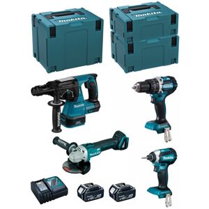 MAKITA Kit MK407RTJ Hammer MAKITA DHR243 - BL brushless motor: the energy produced by the motor is more efficient, increases the productivity of the hammer - Three working modes: drill for wood and metal, drill + hammer for stone, concrete and hammer for small demolitions - 18V hammer with vertical motor: designed for the most demanding jobs - Safety clutch that protects the motor from accidental bit engagement - Model with the possibility of changing to an automatic chuck - Possibility of fitting the new DX01 and DX02 suction adapters - Ergonomic soft grip handle for better grip Hammer Drill MAKITA DHP484 - Hammer Drill with BL brushless motor, energy is more efficient, provides more power and duration with the same amperage - 21 tightening torque positions and direct mode - Variable speed on the trigger with reversible mode: we increase the revolutions with the same power, greater speed of work. - Self-locking chuck, allows changing the accessory in an easy way with one hand - More