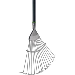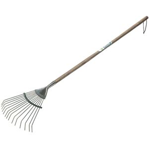 16 flexible round steel tines with epoxy coated finish. Ash handle with clear lacquered finish. Features and Benefits • Head fully hardened and tempered • 16 flexible round tines • Ash handle with clear lacquered finish Contents 1 x Carbon Steel Lawn Rake with Ash Handle