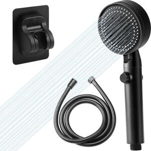 Linghhang - Black High Pressure Water Saving Shower Head, 6 Adjustable Modes, Anti-Scald Design with Stop Device, Easy to Install, Suitable for