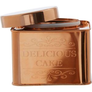This small cake canister is made from durable stainless steel and features a warm copper finish which gives it a lustrous effect. It has an engraved "delicious cake" message and decorative detailing at the front which heightens its visual appeal. Its elegant square design is complemented by a matching round lid which neatly fits on the top. It features a lid that fits neatly and securely on top to ensure your biscuits, cookies and sweet treats are kept fresh for longer. The stainless steel is durable and won't rust easily. The features of this product include: -Copper in color -Stainless steel -Durable -Engraved "Delicious cake" -Decorative design -Square shaped For cleaning, remember to wash in warm soapy water, rinse and towel dry for best results. Get your hands on this retro styled container for your kitchen!