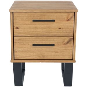Our Vigo bedroom range combines real wood and metal to bring a casual industrial styled look to your home. The simple lines and black stove painted metal legs blend perfectly with the cabinets which are finished with a rich antique wax finish. The raised base makes cleaning under these pieces of furniture so much easier. This 2 drawer bedside cabinet is ideal to keep all your essentials close to your bedside and has space on top for your alarm, lamp or reading material. Size = (W) 45cm (D) 39.5cm (H) 57cm