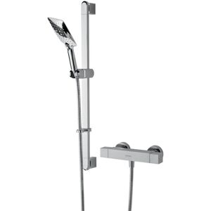 Features and Benefits: All in one box - pack includes bar shower valve, hose, riser rail and a rub-clean anti-limescale multi-function handset so nothing to buy separately Supplied with a fast fit Wallmount 12 fixing kit with built-in front of wall isolation valves on both the hot and cold feed, making it simple to fit, maintain and replace Thermostatic cartridge with preset temperature safety stop at 38 degree C for family-safe showering. A higher temperature can be selected, if required, by selecting the override function Dual control - flow and temperature are controlled separately Automatic shut-off in the event of hot or cold water supply failure 15mm inlet connections Multi function rub clean handset - limescale and debris build-up is quickly and easily removed by rubbing a finger or a cloth over the nozzles Adjustable riser kit included A hard-wearing, flawless chrome finish that lasts for years Scratch resistant and salt spray tested to ensure added durability Suitable for