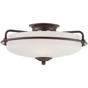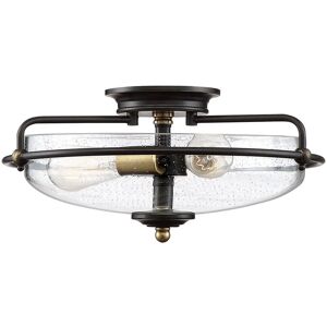 Quoizel Griffin Bowl Semi Flush Ceiling Light Palladian Bronze with Weathered Brass Accents Finish: Palladian Bronze with Weathered Brass Accents Material: Steel, Clear Seeded Glass Height: 30.1cm Width: 42.2cm Diameter: 42.2cm Lamp Type: E27 No. of Lamps: 3 Bulb Included: No Wattage (max): 60W