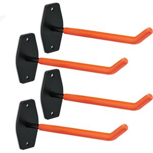 Keep your car tyres safe in a space-saving way with these tyre wall hooks. The set includes 4 wall hangers that you can quickly and easily mount in the garage with the enclosed mounting material. Common car tyres, but also bicycle wheels, rims and more, find space on the resilient steel rim brackets. Thanks to the PVC coating, your rims and tyres are reliably protected from scratches. Wheel Wall Holder in Detail - Dimensions H x W x D: approx. 9 x 5 x 25.5 cm - Diameter of the bar: approx. 1.3 cm - Load capacity: max. 40 kg per holder - Weight: approx. 300 g each - Material: Steel, PVC - Colour: Orange, black Practical Tyre Suspension for Your Garage - Suitable for all common car tyres and rims - Space-saving storage due to wall mounting - High load capacity with up to 40 kg per hook - PVC coating protects against scratches - Easy wall mounting - incl. mounting material Scope of Delivery - 4 x tyre wall bracket - With mounting instructions and material - Decorative items are not