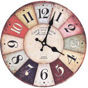 Our retro-style wall clock will make a great addition to your room decor! The clock has a sturdy MDF frame and is highly durable. Thanks to the large dial face and the clear numerals, the clock can be read clearly even over long distances. It can be easily hung onto the wall. The clock will add a nostalgic look to your interior. Colour: Multicolour Material: MDF Diameter: 30 cm Thickness: 2.2 cm Requires 1 AA battery (not included) SKU: 50629 This product must not be disposed of with other household waste in the European Union. EU responsible party Haba Trading B.V. Mary Kingsleystraat 1 5928SK Venlo The Netherlands Compliance-safety@vidaxl.com