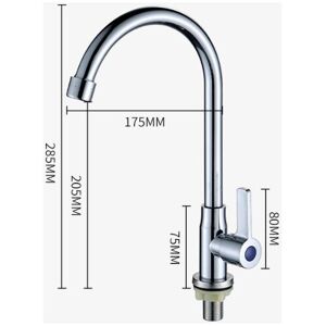 Vegetable sink faucet: Suitable for kitchen and bathroom sinks. Brass faucet: Modern style, luxurious design. Zinc alloy water faucet: Suitable for low, medium, and high water pressure systems. Single cold water faucet: Single lever, easy to use. Vertical kitchen faucet: Easy to install and use.