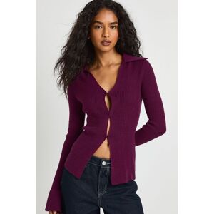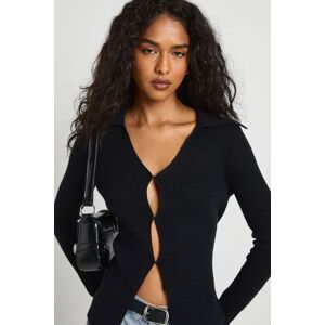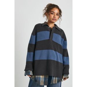 Boohoo Womens Chunky Knit Collared Zip Through Jumper - Navy - Size Medium