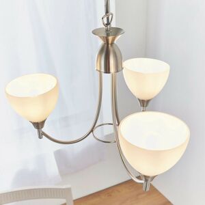 Specification Endon Alton - 3 Light Multi Arm Ceiling Pendant Antique Brass, Opal Glass, E14 Finish: Antique Brass, Opal Glass Material: Glass, Steel IP Rating: IP20 Height (cm): 63 Diameter (cm): 48 No. of Lights: 3 Lamp Type: E14 Bulb: Golf Dimmable: Yes Description A 3 light ceiling pendant with an antique brass and opal glass finish, can also be converted to a semi flush fitting. It is both dimmable and suitable for use with LED lamps. Matching items available in this range, and also comes in satin chrome
