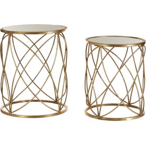 This distinctive design of this table set lends a glam appeal to contemporary and modern themes. Accessorised with a round mirrored glass top, the open-frame metal structure of this table set exhibits curved intersecting lines in a gold finish. This product will be shipped to your address with our premium delivery service to ensure you are fully satisfied with your purchase. As a result, this will slightly increase delivery time.