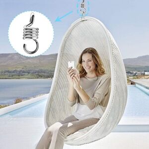 HAMMOCK SPRINGS: Hammock springs can be used to hang sandbags, hammocks, hammocks, swings, rattan chairs, egg swing chairs or other items with fixed height. GOOD GRAVITY: The hammock spring hook is made of high quality metal. It is strong and does not stretch. And it has a good weighing capacity, which can weigh up to 300 kg. EFFECTIVE SHOCK ABSORBER: Our swing spring can absorb the vibration caused by the use of the hammock, which helps reduce shock or vibration. It offers you a comfortable experience. It can also extend the life of the hammock. EASY INSTALLATION: Both ends of the hanging chair spring are hooks, which can be easily attached to the hammock without any tools or complicated operations. It is easy and quick to use. You will receive: Our set consists of 2 hanging chair springs. The weight of each is 390 g, the thickness of the spring is 0.7 cm.