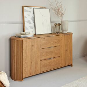 Imagine finding a design as perfect as the Morriston in the sky - Our Morriston series: Elegant, curved side panels, covered with half-round bars, paired with shaped top panels create an incomparable look that is so modern, but at the same time so classic and elegant. Our Morriston series creates this captivating design. This look, paired with useful functions, is the highlight for your interior - whether it's a living area, bedroom or home office. And thanks to the latest surface technology, the oak decor offers a deceptively real wood experience. The Morriston SB 160 sideboard from this series offers extra storage space with its 3 large drawers and 2 door compartments with removable shelves, so that you can store everything neatly. Elegant real aluminum handles also ensure easy opening and closing. Thanks to the cable holes, electrical devices can be connected perfectly and everything is tidy. Union Rustic
