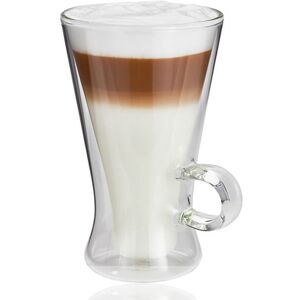 The Judge Duo Set of 2 Grande Latte Macchiato Glasses are made from borosilicate glass and are double walled thermal glassware which means that drinks will stay hotter for longer whilst the exterior stays cool to the touch. These Judge Duo grande latte macchiato glasses are perfect for serving a fresh homemade coffee at home for family and friends. The double walled construction also prevents condinsation which prevents marks on your worktop from damp or burns. Each of the grande latte macchiato glasses are individually mouth-blown and are scratch and heat resistant up to 100°C. This set of 2 grande latte macchiato glasses are dishwasher safe for easy and convenient cleaning. Each latte glass has a capacity of 320ml.