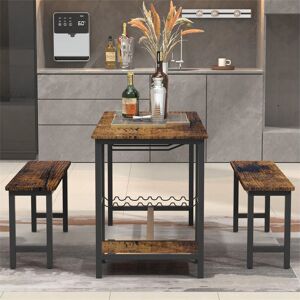 SIMPLE BUT MODERN-Dining table set for 4, the industrial style steel legs and tabletop with grey imitation marble veneer will add a touch of elegance to the your room, beautiful, simple, smart and stylish. SPACE-SAVING DESIGN-1 table and 2benchs, and the stools can fit quite nicely beneath the table,space saving and convenient. Mufti-functional: Two bench-style seats with a large 114cm in table provide space for the whole family to enjoy. Small kitchen table Perfect size for your small studio apartment or a small dining room.The wonderful dining set also could be used as a computer desk. DURABLE & STURDY- Dining table set Table legs and stools are made of heavy-duty steel, table and stools top with brown wood grain finish, Well made and durable, each seat can hold up to 250kg. The water-resistant tabletop and chairs help ensure a smooth surface for easy cleaning, so you can keep this set looking its best for an extended period. DIMENSIONS Table: L114*W70*H75cm Bench: L100*W30*H45cm.