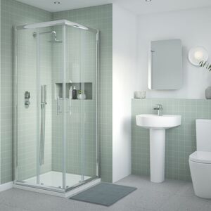 The Hudson Reed Pacific Quadrant Shower Enclosure 1000mm x 1000mm - 6mm Glass is a model from the Pacific range of shower doors and enclosures, part of the Hudson Reed bathroom collection. This Hudson Reed Pacific Quadrant Shower Door makes a powerful statement, transforming your bathroom into an even more luxurious and stylish which gives your bathroom that extra boost of modernness. Supplied complete with a lifetime guarantee, you can be assured that you are receiving an item of the highest quality. Please Note: Door Frame Adjustment 960mm - 980mm Features and Benefits: Square double sliding doors Square footprint is perfect for smaller bathrooms or shower rooms Quick release roller wheels allow for simple cleaning of the unit Attractive polished chrome frame is designed to match taps, showers and other brassware Doors have quick release rollers for easy cleaning Manufactured from 6mm clear toughened glass for extra-safe showering Should be used in conjunction with a shower tray