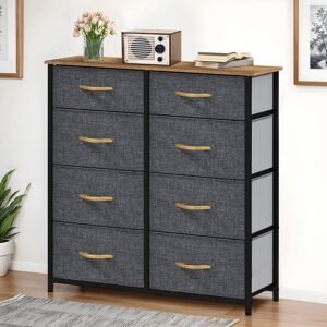 DIVERSIFIED STORAGE SPACE: The cabinet has 8 fabric drawers, each holding 60-80 pairs of socks, 15-18 T-shirts or 8-11 pairs of jeans; open compartment and 2 tops for placing frequently used items; 2 hooks for hanging keys, bags and other small items CHARGING YOUR DEVICES IS EASIER: The chest of drawers is equipped with a power strip with 1 USB port, 1 Type-C prot and 2 sockets and a 2m power cable, so you can charge your mobile phone, headphones, desk lamp or laptop, etc. conveniently STABLE & DURABLE: With a coated metal frame and E1 grade engineered wood cabinet tops and shelf, the drawer storage unit is strong, durable and easy to clean. The folding fabric drawers have stiff cardboard and MDF board inside, not easy to deform LIGHTWEIGHT & VERSATILE: This vintage cabinet is practical to be used as a living room sideboard, bedroom storage unit, clothes cabinet, hallway furniture, etc. The chest of drawers can hold up to 50kg but weighs only 16.6kg, easy to move around ASSEMBLY IS A