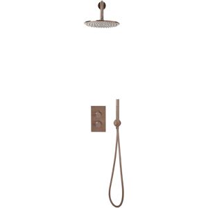 Features and Benefits: Comes with bar shower valve, shower kit and fix shower head Supplied with 2 handle options - Diamond cross hatch detail or a sleek smooth apperance Finished in brushed bronze Thermostatic temperature stability keeps showering safe Manufactured from high quality brass and stainless steel material Stylish, modern look in your bathroom at exceptional value WRAS approved product Guarantee: Lifetime (12 months on serviceable moving parts from the date of purchase. Does not cover any product that has been modified, altered, transformed, or relocated in any way) Shower Type Thermostatic Valve Position Concealed Outlets 2 Shower Includes Shower Kit, Shower Valve, Fixed Head Shower Valve Controls 2 Shower Arm Length 350.28mm Shower Head Width 235mm Shower Head Depth 235mm Min Pressure 0.5 Bar Max Pressure 5.0 Bar Inlet Connection Size 1/2 BSP Material Brass / Stainless Steel Colour Brushed Bronze Style Modern Market Domestic Brand Orbit Collection Core Weight 4.435 Kg