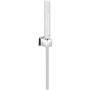 Features of the Grohe Euphoria Cube - Complete hand shower set 1 spray (27703000) : Handshower (27 699 000) Wall shower holder (27 693 000) Silverflex shower hose 1250 mm (28 362) GROHE EcoJoy 9.5 l/min flow limiter GROHE DreamSpray perfect spray pattern GROHE StarLight chrome finish SpeedClean anti-limescale system Inner WaterGuide for a longer life Twistfree preventing the hose from twisting Min. recommended pressure 1.0 bar Product range : Euphoria Cube Colour : Grey Material : Metal Manufacturer colouring : Chrome Length (cm) : 125 Number of jets : 1 Shape : Stick Type of support : Wall-mounted Weight : 0.51