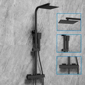Through minimalist design and exquisite craftsmanship, we redefine the bathroom space, allowing every family to experience the refinement and elegance of life in every detail. We hope that through our products, we can bring users not only functional satisfaction, but also peace of mind and joy. Thermostatic shower height and angle adjustable bathroom 2 spray heads Features: Square Swivel Overhead Shower/Rain Overhead Shower: Shower with faucet, suitable for many types of bathrooms, soft to the touch and will not scratch your hands. Rain shower head, 200mm overhead spray, large shower area, silicone water outlet, with water purification function. Black-plated shower head, 360° rotation to find the shower angle that suits you and enjoy a pleasant shower experience. Thermostatic mixer temperature is precise and stable: Thermostatic shower mixer, temperature 38°C, need to press and hold the button to adjust the temperature, maximum rotation 360° Height adjustable shower rod: Handheld
