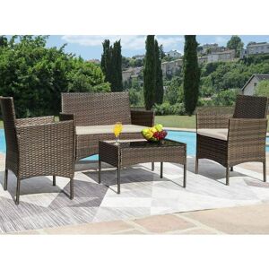 Introducing our 4-piece rattan furniture set, perfect for creating a cozy outdoor seating area for you and your family. This set includes two chairs, one sofa, and a coffee table with a tempered glass top, providing ample space for relaxing and entertaining. Designed with comfort in mind, the thick padded water resistant cushions offer a luxurious seating experience and the covers are easily removable for cleaning convenience. The curved arm design adds a touch of elegance to the set, enhancing its visual appeal. Crafted with a sturdy metal frame and PE rattan, this furniture set is built to last and requires minimal maintenance making it the perfect choice for outdoor use so you can make memories with your family and friends for years to come. MCC Direct Rattan Furniture 4 Piece Set Garden Patio Seating with coffee table Black Size: 1 Pack