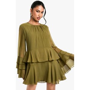 Lightweight, floaty and oh-so-chic, a chiffon dress is the ultimate day-to-night piece in any girl's wardrobe. An airy sheer fabric which is perfect for evening wear, let your dress do the talking and prepare to turn some serious heads in this pretty dress. Need inspo? Team this one with ankle boots and a leather jacket to nail the ultimate smart-casual look, or opt for barely-there heels for nights that require a little more glam. New mantra: this dress, on repeat.Style: Smock DressDesign: PlainFabric: ChiffonLength: MiniNeckline: CrewSleeve Length: Long Sleeve