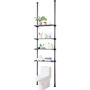 Features & Details Compatible with Most Toilets: Our frame design can accommodate various types of toilets. This over the toilet storage rack measures 24.8" x 10.2" x 66.9" (630 x 260 x 1700 mm), making it suitable for limited bathroom spaces. The bottom crossbar can be adjusted to 3.4" (85 mm) or 6.2" (158 mm) from the floor, ensuring it doesn't block pipes. The bottom shelf is 38.6" (980 mm) above the ground, allowing the toilet lid to open fully and move freely. 3-Tier Over-toilet Storage Rack: This 3-tier storage rack offers large capacity storage space with three preset height positions for the middle shelf. You can flexibly adjust the middle and bottom space according to the height of your items, making it more convenient to access large items like laundry detergent. Each shelf can hold up to 33 lbs (15 kg), helping you keep towels, shower gel, potted plants, and other bathroom items organized without having to bend down to get things from under the sink. It comes with three