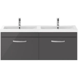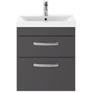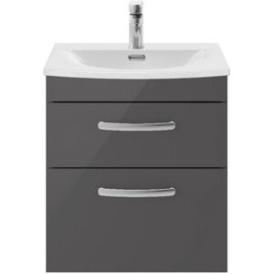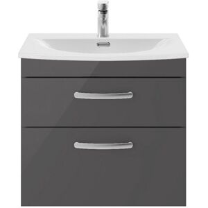 Model Number: ATH078D Elevate your bathroom's aesthetics with the Nuie Athena Gloss Grey 600mm Wall Hung 2 Drawer Vanity Unit and Thin Edge Ceramic Basin. This modern vanity unit is designed to combine functionality with contemporary style, providing an elegant solution for your storage needs. Finished in a sleek gloss grey, it complements various bathroom styles while ensuring that your essentials are neatly tucked away. The wall-hung design not only saves valuable floor space but also creates an illusion of a larger room, making it perfect for both compact and spacious bathrooms. Featuring two spacious drawers, the vanity unit offers ample storage for toiletries, towels, and other bathroom necessities. Each drawer is equipped with a soft-close mechanism, ensuring a quiet and gentle closure every time. The accompanying thin edge ceramic basin is designed for durability and easy maintenance, featuring a single tap hole at the centre for a modern mono basin mixer tap, allowing you to
