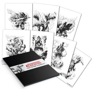 A premium lithograph set containing seven art prints, each one produced in the UK on 300gsm linen paper featuring. Each of the seven art prints features iconic Dungeons & Dragons imagery. The prints are supplied in an anti-scuff black portfolio. Each print measures 35.56 x 27.94cm. This set is limited to only 1974, the year D&D was unleashed on the world.