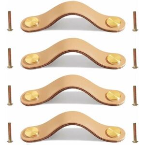 Scope of delivery: 4 leather drawer pulls (13.8 x 2.5 cm) with mounting screws, simple and fashionable, perfectly match modern and traditional designs and meet your different needs. Elegant vintage style: The high-quality leather drawer pulls in a delicate, beautiful, and modern style will enhance your furniture. The combination of brass nut and leather is simple and elegant, highlighting vintage furniture and enhancing the taste of the interior decoration. High-quality material: Made of handmade leather. High-quality and durable materials offer you a warm and comfortable feeling with a long service life, soft rust protection, and adjustable screws are made of stainless steel and do not rust easily. General dimensions: The screw length is approximately 2.5 cm, suitable for most drawers. Handle length: 13.8 cm, width: 24 mm. Convenient opening and closing of drawers.