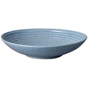 A stunning statement piece and showcasing the unique Studio Blue glaze, the generously proportioned Denby Studio Blue Flint Large Ridged Bowl is great for serving salads, vegetables, chilli, curry and pasta dishes. Ideal for entertaining (think barbecues and buffets) and also makes a great fruit bowl or display piece in the home. Handcrafted in the UK at the Denby Pottery, this large ridged bowl is made from high quality, locally-sourced clay and then expertly glazed to enhance its durability. This Denby large ridged bowl is oven, microwave, freezer and dishwasher safe. Dimensions - Length: 31cm, Width: 31cm, Depth: 7cm. Weight 1500g. Capacity: 2500ml. The Denby Studio Blue Flint Large Ridged Bowl is supplied with a 10 year Denby guarantee and collectors promise. The Studio Blue range from Denby is a tactile collection that captures the essence of their hand-crafting skills and textured glazes that the Derbyshire company has perfected over 200 years. Inspired by the colours and textures found in natural stone and minerals, Studio Blue uses four stunning shades of blue - chalk, cobalt, flint and pebble - that work together to create a beautiful tonal range. Influenced by the interior trend for a natural aesthetic in the home, Denby Studio Blue includes a range of platters, plates and bowls that are perfect for laid-back entertaining.