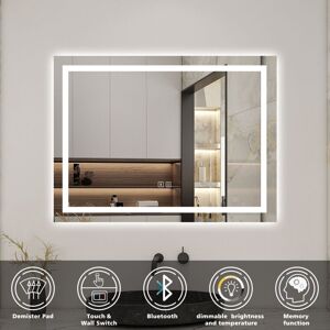 Product Features: with Demister Pad---Our heated pads keep your mirror fog-free which not only saves you time when you need your mirror but reduces the need for cleaning off hand marks. Bluetooth Technology (Play music easily via Bluetooth) 3 Light colors--- Cold White (6000k), Warm White (4500k), Warm (3000k). Can adjust the color of the led lights. Adjust Brightness---Long press the touch switch to adjust the LED brightness. Skin Sensitive Touch System---This wall mounted vanity mirror is equiped with a Dual Touch Control System,one button activates the led light and demister pad. Another button activates the bluetooth speaker. Support Wall Switch. Brightness Memory Function---The bathroom mirror has a memory function that automatically saves the last light setting you used. UK locally delivery, item well packaged in rigorous design. Wall mounted vertically or horizontally. High Oxidation Resistance---The edges of our mirror are dealt with the advanced technology to eliminates 100%