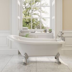 Key Features Classic skillet slipper silhouette Compact but roomy (1550 × 750 mm) Smooth gloss white Lucite acrylicDragon-shaped black feet Reinforced structure 140 L capacity 10-year guaranteeWhat's Included Park Lane Buxton Freestanding 1550 x 750mm Roll Top Bath Set of Black Dragon FeetAll fittings and levelling legs included Please note: bath waste and taps not included The Buxton blends the elegance of a traditional slipper bath with clean contemporary lines. Its graceful roll-top edge adds visual depth, while the deep, single-ended shape offers a perfect place to recline and unwind. Though it channels classic style, it feels relevant in any modern or period bathroom.Premium Quality MaterialsInside, you’ll find genuine Lucite acrylic, chosen for its silky feel and resilience. It resists everyday wear – scratches, stains, even fading under sunlight or harsh cleaners aren’t a worry. Beneath the surface, a sturdy core of 5mm high-density fibreboard and a layer of 3–3.5mm GRP composite work together to prevent flex and ensure the bath holds its elegant form for years.Statement-Worthy Dragon FeetWhat really sets this bath apart? The exquisite dragon-design feet, plated in polished chrome and detailed with traditional flair. They aren't just beautiful - they’re built to last, with anti-rust plating and a design that stands out in any décor.Install Without CompromiseWhether you’re pairing it with a deck-mounted filler or a freestanding floor tap, the Buxton accommodates your vision. While taps and waste fittings aren’t included, the bath comes with all other necessary installation hardware - including stainless steel fixings and adjustable legs - making setup smoother and more reliable. Perfect for Cosy, Small SpacesAt 1550mm long, the Buxton fits snugly into smaller bathrooms without feeling cramped. Its generous 140-litre capacity offers a surprisingly indulgent soak, allowing height and width to do all the luxury talking.Bright, Easy-to-Live FinishThe glossy white acrylic interior reflects light beautifully and gives an instant sense of cleanliness. It blends seamlessly with other fixtures, and looks just as good with ornate fixtures as it does in minimalist settings.Built to Last (and Loved Longer)This isn’t a bath you’ll tire of. The 10-year guarantee speaks for itself - built tough beneath the surface and timelessly styled to be at home for years to come. Compatible with:Park Lane Dragon Foot Black Bath Leg Set for Double Ended and Slipper Baths JLF07