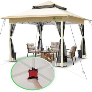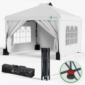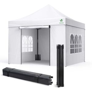 ADVANTAGES Waterproof and UV-resistant High-quality foldable structure Removable sides Easy to store and transport DESCRIPTION FEATURES Height : 275 cm Base area : 3x3m Structure material : Steel Cover material : 100% polyester Weight : net 17.5kg Accessories: 1 garden gazebo with roof; 4 detachable panels; 8 pegs; 4 tension ropes; 1 carrying bag 3x3m foldable and waterproof garden gazebo, equipped with 4 detachable walls, ideal for your outdoor events, with easy assembly and accessories included. EASY TO INSTALL - Our foldable gazebo features pop-up design that takes minutes to install.No tools required, gazebo is very compact and easy to store. SOLID CONSTRUCTION - The upgraded frame is made of high quality steel and powder coated for rust resistance and extra durability to give you better stability. Its PA-coated polyester roof and a basis weight of 160g/㎡ effectively protect you from the sun. WATERPROOF AND ANTI-UV: With its roof coated with a special layer, our gazebo effectively
