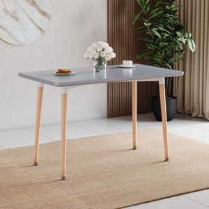 This elegant 4 seater square dining table combines durability with modern design, making it an ideal addition to any dining area. Constructed from solid Beech wood and MDF, the table features a resilient lacquered finish that ensures it can withstand daily use with ease. The sturdy Beech wood legs are equipped with non-slip grips at the bottom, providing a firm and stable structure on any surface. Perfectly sized to seat four people, this table is ideal for small families or casual gatherings with friends. Norden Home Table Top Colour: Grey