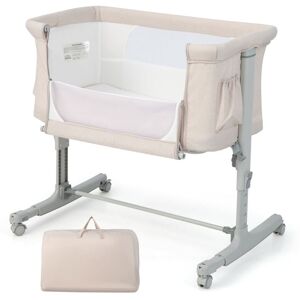 Looking for a versatile baby bassinet? Take a look at this bedside bassinet! The 3-in-1 multifunctional baby bassinet can meet your different needs! It can be used not only as a bassinet for newborns, but also as a swing cradle and a bedside sleeper. You can adjusted the height of the bassinet to make it connected to the parent's bed. And you can also adjust the angle of the bassinet to reduce the risk of suffocation. Bassinet with lockable casters makes it easy for parents to move. You can also fold it with one click to fit it in the trunk of your car. Anyhow, this bassinet is a perfect choice for families with baby! Features:Side storage for you to store the baby itemsConvenient to set up with the detailed instructionSolid mental frame provides a large weight capacityCome with an strap that can hold the bassinet securelyFoldable design make it more easy to carry the bassinetCome with soft mattress for comfortable sleeping experience 3-in-1 baby bassinet, also a swing cradle and a bedside sleeperConsiderable mute wheel, keep quiet in your babys sleeping timeCan be adjusted in 4 different height to make the bassinet connected to bedThe baby bassinet can be tilted to reduce the risk of spitting up and chokingSpecification:Color: BeigeMaterial: Steel, Polyester Fabric, Plastic, Oxford FabricOverall Dimensions: 86 x 43 x 67 - 81 cm (L x W x H)Mattress Size: 76 x 43 cm (L x W)Weight Capacity: 9 kgNet Weight: About 8 kgSuitable Age: 0-5 monthsPackage includes: 1 X Basic Bassinet1 X Mattress2 X Fixing Strap1 X Carry Bag1 X Instruction Costway 3-in-1 Baby Bedside Bassinet Crib Height-adjustable Infant Newborn Cot Bed in Grey