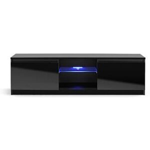 BLACK GLOSS TV STAND CABINET WITH LED BLUE CENTRE LIGHT FOR 32 TO 50 INCH LCD LED SCREENS High gloss TV cabinet for LCD LED screens This modern low bench style unit has plenty of storage with two opening cupboard sections behind two doors Premium wooden entertainment furniture this cabinet has high gloss finish on the door fronts, with glass centre shelf where the LED blue lights are fixed. LED lights are mains powered Length 140cm x Depth 40cm x Height 35cm Colour Black Style Modern Type Cabinet Buy it Now Buy it Now