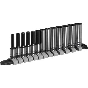 Pair of extra deep 3/8"" sockets in 10mm and 12mm single Hex (6pt) profile. Designed to reach heavily recessed fixings, including those found on bumper, rear lamp and door hinge fittings. The six-sided socket head drives from the flats to provide more torque, useful for freeing seized nuts & bolts, whilst avoiding the risk of rounding. The socket has slightly convex internal faces and drilled out corners, for a solid grip, even on damaged fastener heads. Quality sockets manufactured from chrome plated chrome vanadium, a very useful set for car servicing and maintenance. Socket sizes: 10, 12mm. 3/8""D single Hex (6pt) x 120mm long. Extra deep (120mm long) designed for deeply recessed fixings. Applications: bumper, rear lamp, door hinges, 10mm/12mm diesel glow plugs, VAG, Opel, Ford & BMW handbrakes. Manufactured from chrome vanadium.