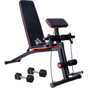 As a gym master, this heavy-duty workout bench is a must-piece at any personal training studio, home gym or commercial gym. Durable and robust: The weight bench is made of durable steel. The sturdy steel construction of the bench ensures your safety during the exercises. Comfortable seat experience: The durable cotton-padded cushion will offer you a lot workout comfort. Wide range of exercises: The backrest would strengthen your back muscles. Thanks to the curl and butterfly station, shoulders and arms could be exercised, while the leg-curl would train your thighs and legs. The range of setting options enables the workout to be adapted to suit your specific needs. Dimension: 182 x 135 x 205 cm (L x W x H) Backrest size: 79 x 24 x 3 cm Seat size: 35 x 29 x 3 cm Arm curl cushion size: 40 x 24 x 3 cm Tube diameter for weights: 25 mm Max. user weight: 100 kg Max. leg extension weight: 25 kg Max. butterfly arm weight: 25 kg Backrest adjustable level: 3 levels, Min. 46 cm Max.82 cm Arm curl