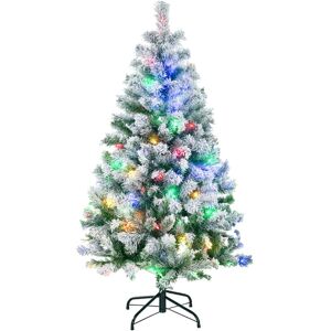 Glow up your Christmas in beauty, with this HOMCOM 4.5ft artificial christmas tree with lights. Blending snow-dipped tips and 150 LED lights, you'll love celebrating the season around this centrepiece. Choose between white and colour for the lights - whatever suits your mood. It's super easy to set-up too: simply fit the two pieces together, allow the auto-open branches to fall into place and shape how you want. Comes with a metal base. Specifications: - Colour: Green - Light Colour: Warm White/ Multi-Coloured - Material: Plastic, Steel - Overall Dimension: Dia. 80 x 135Hcm - Cord Length: 3m - Tip Count: 311 - Light Count: 150(LED) - Input: 220V-240V, 50-60Hz - Output: 31V, 116mA, 3.6W - Item Label: 830-752V70MX Note: Only for indoor use, not for outdoor In order to get a full appearance, please spread out all individual tips to get the best possible look from the tree, suggest you take 20-30 minutes to shape the tree. Features: ● 4.5ft tall xmas tree -great for small and medium-sized