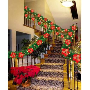 🎄 9ft Christmas Garland --- Upgraded Christmas Garland Parameters: 240 branches, 50 LED lights, 30 Christmas balls, 7 flowers. The handmade rattan has a realistic visual effect and feel, adding a sweet holiday atmosphere to your home 🎄Christmas wreath --- The Christmas wreath is made of non-toxic PVC materials, safe and durable, easy to store, it can be used as a home decoration for a long time. Buy once, use for several years 🎄DIY Christmas garlands: suitable for all occasions --- Christmas garlands can be twisted into any shape you want to meet your different needs. Perfect for decorating your fireplace, windowsills, stair railings, table tops, hallways, etc. 🎄Christmas garlands with lights --- Since the effect of 'Christmas wreath lighting with 30 LED string lights was so dim, we upgraded the number of LED lamp beads from the original 30 lights to 50 LED lights. The light string operates on 3 AA batteries (not included). You can place the Christmas string lights anywhere in