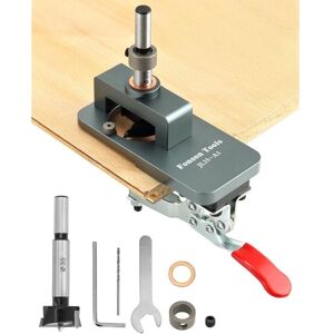 【Adjustable Drilling Depth】Adjustable drilling depth, adjust the distance between the limit ring and the drill guide to determine the depth of the hole. 【4-Speed Adjustable Edge Distance】4-Speed adjustable edge distance from the plate, the hinge drilling jig comes with a wrench to loosen the screw to be adjusted. 【Designed for 35mm hinges】This concealed hinge jig kit Designed for 35mm hinges, no need to measure, makes cabinet door installation easier. 【Quick Locating and Fixing】No need for strong clamps, the 35mm concealed hinge jig hole opener has its own fixing device, quick locating and fixing. 【Package Included】1 x Hinge Positioner, 1 x Allen Socket, 2 x Adjusting Wrench. Instructions for Use: 1. Draw a reference line. Referring to Depending on the height of the cabinet door and the number of hinges installed, choose a suitable position to draw the center line of the hole. 2. Align the reference line. Align the tip of the product with the reference line and fix it with the handle