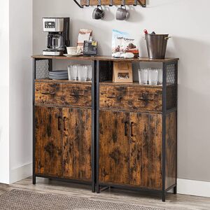 Enrich any room: With a mix of rustic brown panels, black steel, an airy grid design, and slatted doors, this storage cabinet is sure to add chic appeal to any room! Do you prefer to elevate your living room, bathroom, or kitchen? Even more stable: The quality particleboard panels are strong, what happens when reinforced by the sturdy steel structure? They create this stable sideboard, capable of holding up to 30 kg on the top surface and ready to serve you for years to come. You can never have too much space: With an open shelf, a deep drawer, and a closed compartment with an adjustable shelf, this bathroom cabinet goes the extra mile to meet your various organising needs. Firm feet: Wobbly cabinets are not conducive to safe storage. Equipped with adjustable feet, this multi-purpose cabinet can remain stable, well-positioned, and at peace with slightly uneven floors at all times. What you get: An industrial-style floor cabinet, each part numbered and easy-to-follow instructions for less difficulty in assembly, and an anti-tip kit for greater stability during use. Colour: Rustic Brown/Black Number of Exterior Shelves: 1 Countertop Material: Manufactured Wood Cradle to Cradle Certifications: No Magnetic Door Catches: No Cabinets Included: Yes Sliding Doors: No Glass Doors: No Top Manufactured Wood Type: Particle Board/Chipboard Silverware Tray: No Primary Manufactured Wood Type: Particle Board/Chipboard Lined Interior: No Metal Accents/Trim?: No Lockable: No Main Material: Manufactured Wood Removeable Wine Rack: No Open Storage: Yes Soft Close or Self Close Doors: No Product Type: Sideboard Number of Interior Shelves: 2 Built-In Lighting: No Mirrored: No Wine Rack: No Stemware Rack: No Drawer Weight Capacity: 5 Cable Management: No Finished Back: Yes Weight Capacity: 40 Kiln-Dried Wood: Yes Shelf Weight Capacity: 5 Product Care: Avoid use of abrasive cleaners Drawer Glide Mechanism: Wooden Slide Additional Tools Required (Not Included): Screw Driver eco-INSTITUT-Label: No Unfinished: Yes Plug Included: No Water Resistant: No WEEE Recycling Required: No Wheels: No Natural Variation Type: No Natural Variation Suggested Number of People for Assembly/Install: 1 Drawer Glide Material: Wood Purposeful Distressing Type: No Distressing Scratch Resistant: Yes Borough Wharf