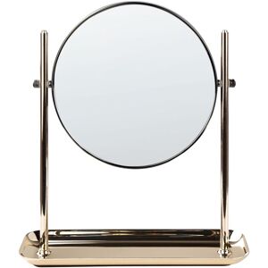 Double-Sided Mirror with Magnyfing Surface. Make sure you have everything you need in your beauty corner with this makeup mirror. The piece features two sides, with one magnifying, which will help you with your morning or evening routine. What is more, it features a tray, where you'll be able to put various accessories or favourite jewellery. Crafted out of durable iron, the piece is very low maintenance. Details: Product Type: Makeup Mirror Style: Industrial General Color: Gold, Black Material Type: Metal Main Material: Iron Additional Material: Glass Shape: Round Finish: Gloss Dimensions: Depth: 8 cm Width: 25 cm Height: 30 cm Weight: 1.1 kg Offer Includes: 1 x Mirror Key Features: 360° Swivel, Magnifying Side, Well-Suited for Variety of Home Decor, Decorative Yet Functional, Exceptionally Low-Maintenance Assembly Information: Does Not Require Assembly Maintenance tips: Iron: 1.Clean with a mild cleaner and soft cloth, wipe dry afterwards 2.To avoid scratches do not use abrasive