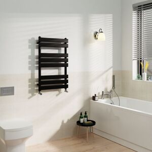 The satin black flat panel heated towel rail is a contemporary masterpiece but is as equally suited for modern bathrooms suites alike. The entire Juva range is available in a wide range of sizes and colours to complement the vast number of styles available to us. Perfect for busy family bathrooms, this is a simple yet functional towel rail. Complete with a 10 year Fit and Forget guarantee(applies only to water leaks). Feature -Minimalist style, fit any kinds of interior design. -Modern manufactured finish process makes radiators smooth and elegant looking. -Can be use on all UK heating systems(tank fed or combi systems etc.) -Tested under high hydraulic pressure to ensure impermeability. -Brackets and fixings included(Valves are excluded). -All bathroom ladder radiator comes with manufacturer-leading 10 year guarantee. -Tested to BS EN442 Specification -Size: 800x500mm -Number of bars: 8 (2+3+3) -Pipe Centres: 450mm -Tube Type: Flat Panel -Heat output: 1275BTU -Finish: Black