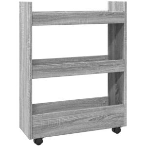 This narrow storage trolley is meant to be a decorative and practical addition to your home. Stable and durable material: Engineered wood is a durable and stable material with a smooth surface that is resistant to moisture, warping, and splitting, making it a reliable choice for a variety of projects. Ample storage space: The slim storage trolley provides ample storage space for keeping your various daily essentials well organised and within easy reach. Easy to move: This rolling cart, with the included four swivel wheels, can be easily moved to the desired place. The two wheels are lockable, which keeps the cabinet in position and adds stability. Wide applications: Depending on your needs, you can use this storage trolley in the living room, kitchen, or bathroom thanks to its narrow shape, even in small spaces. Colour: Grey sonoma Material: Engineered wood Overall dimensions: 60 x 20 x 82 cm (W x D x H) Shelf dimensions: 57 x 17 x 7 cm (W x D x H) Number of wheels: 4 (2 have brakes)