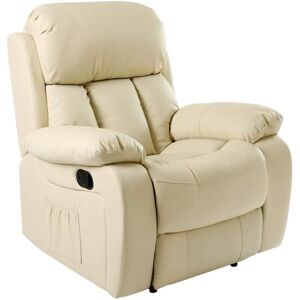 Heated massage chair with manual recline and built in footrest Although this very comfortable bonded leather armchair can be used for gaming or watching TV, it is particularly suited to those who need support for their back or find it hard to relax. The soft foam padding in the backrest and headrest offers just the right balance between comfort and support. And the comfortable padded armrests help you choose a position that offers complete relaxation for your arms. The backrest can be reclined to a comfortable position by releasing the latch below the armrest. The footrest is also raised using the sturdy latch mechanism. The attached controller lets you heat the base of the backrest to warm the muscles in your lumbar region. You can also choose to have a soothing massage of your upper and lower back, thighs and calves. This vibration massage is provided by eight inbuilt pads that are placed at strategic points in the chair to offer relief to tired or aching muscles. The controller for
