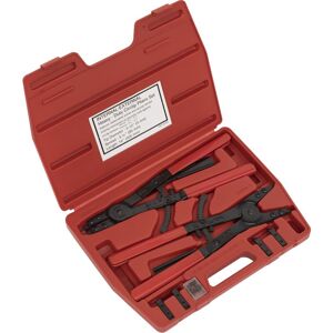 Sealey Premier Heavy-Duty Circlip Pliers Set Internal/External 400mm Features: Internal and external circlip pliers with spring ratchet locking mechanism to securely hold against circlip tension. Includes six sets of tips at various angles. Fitted with chunky grip PVC handles. Supplied in storage case. Technical Details: • Internal and external circlip pliers. • Spring ratchet locking mechanism to securely hold against circlip tension. • Maximum spread 85mm. • Fitted with chunky grip PVC handles. • Contents: Ø3mm Tips; 0°, 45°, 90° (2pc each), Internal and External Circlip Pliers. • Lifetime guarantee*. • Model No. AK8501 • Model No. AK8501 Additional Information: • One of a comprehensive range of Premier Hand Tools, suitable for daily professional use. • Internal and external circlip pliers with spring ratchet locking mechanism to securely hold against circlip tension. • Includes six sets of tips at various angles. • Maximum spread 85mm. • Fitted with chunky grip PVC handles. •